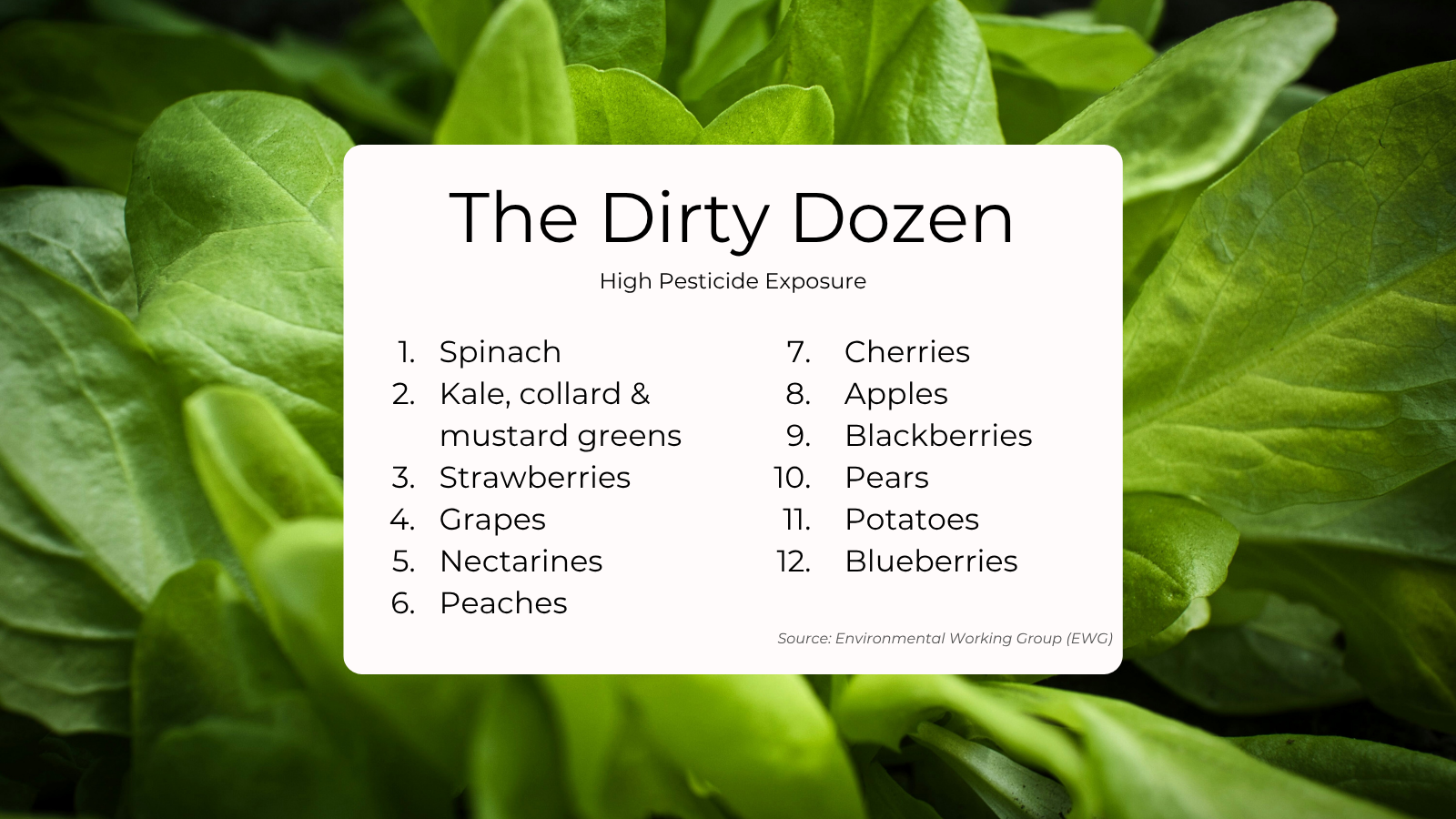 The Dirty Dozen highlights produce that tends to carry the highest pesticide residue when grown conventionally.
