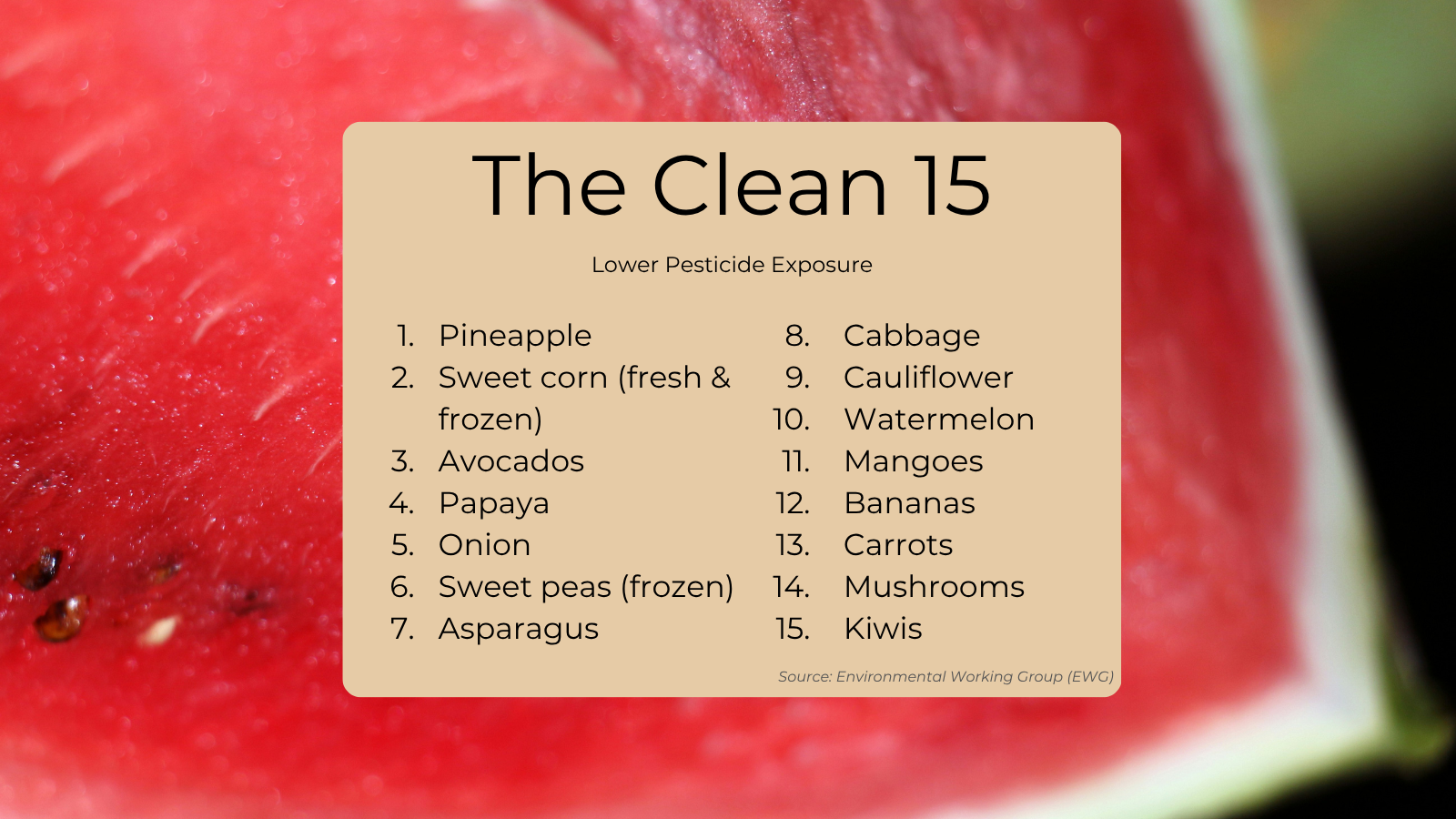 The Clean Fifteen includes produce with the lowest levels of pesticide residue.